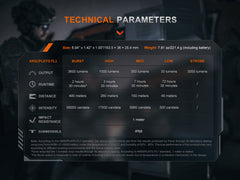 The Fenix TK21R Duty Flashlight is a powerful tactical tool built for professionals who need reliable, high-output illumination in critical situations. With an impressive 3600-lumen max output and a 480-meter beam distance, this light cuts through darkness with precision. It features a Luminus SFT90 LED and Fenix’s patented APF (Advanced Pulse-frequency Transmission System) for unmatched beam consistency and performance.