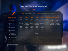 - Lighting Modes: White light (5 levels), Strobe, UV High, UV Low